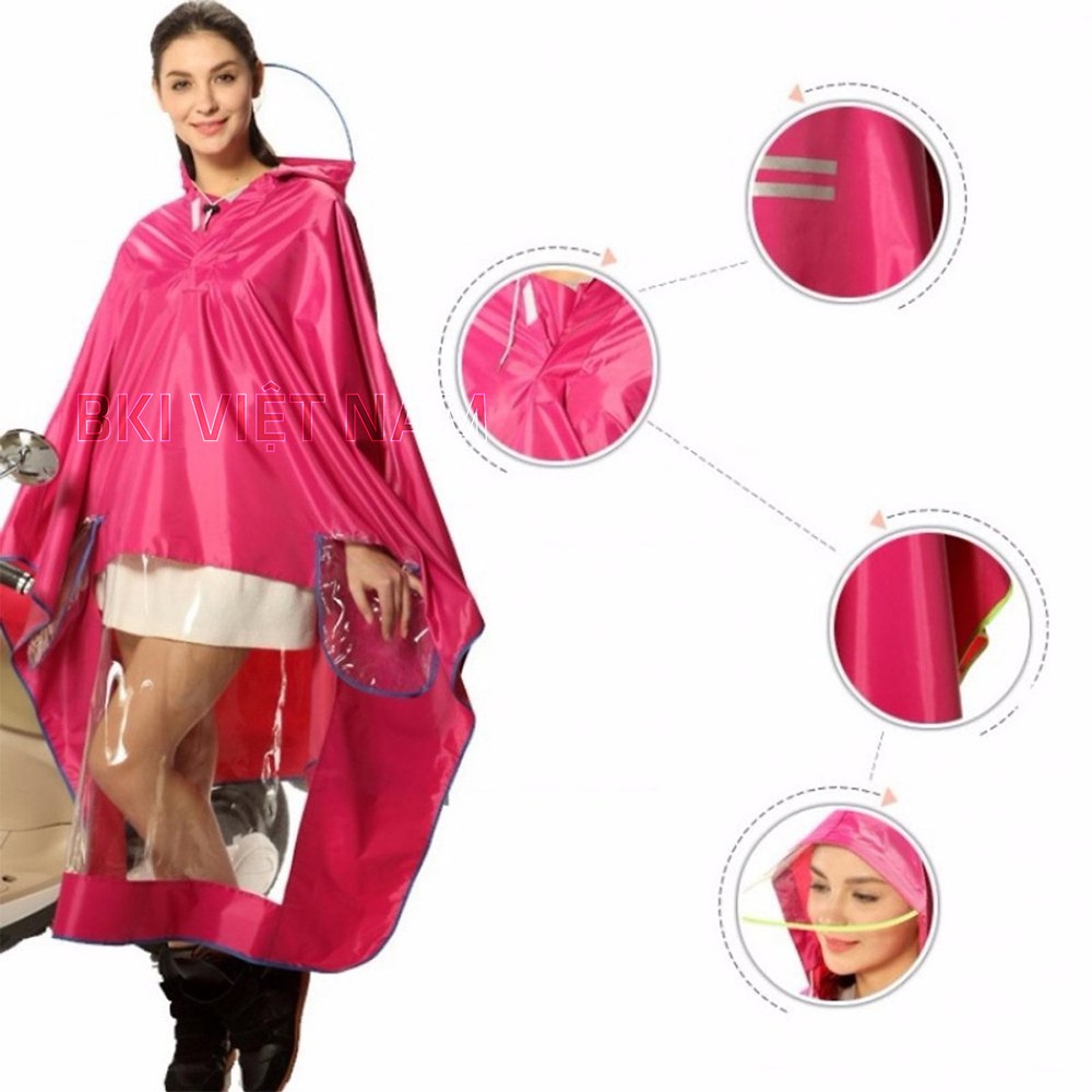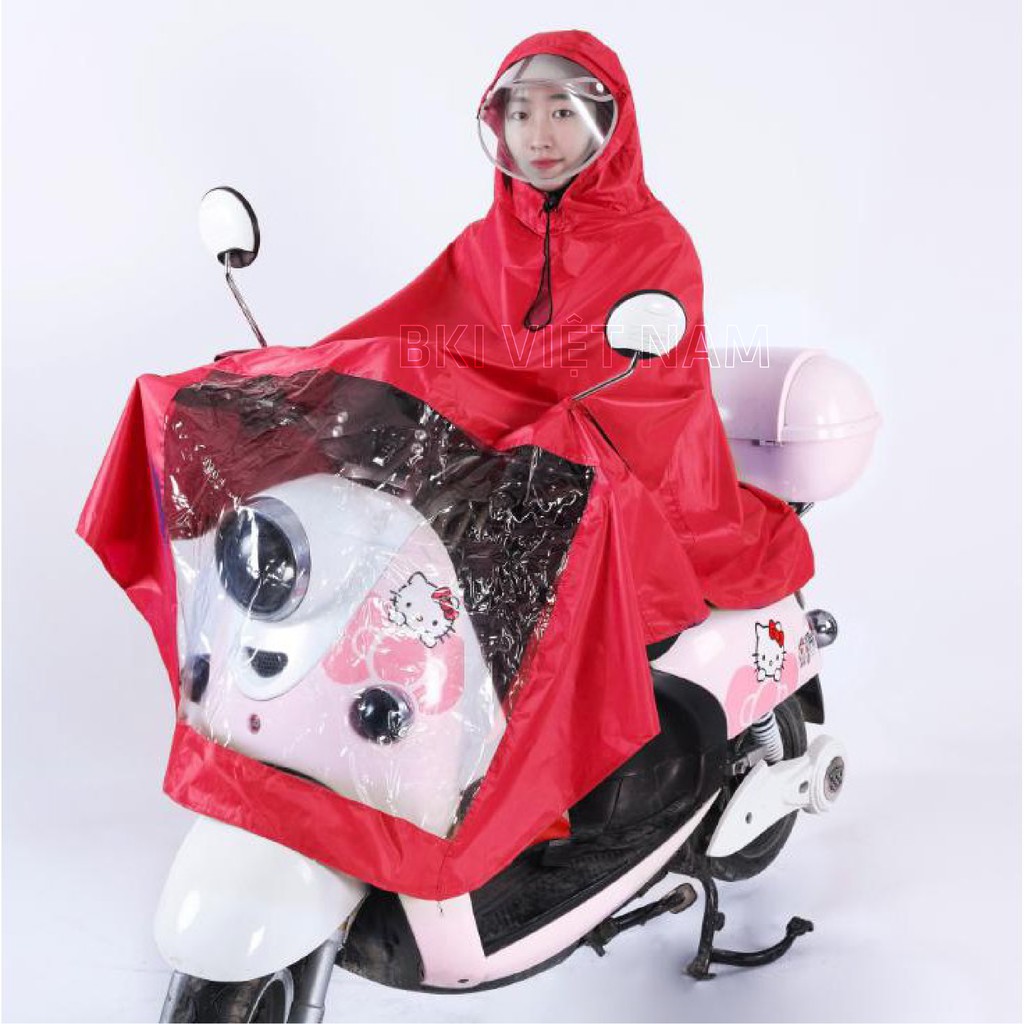 - Áo Mưa vải dù Có Kính Che Mặt thiết kế áo to, che kín tới chân hạn chế mưa làm ướt phần quần dưới gối như những loại áo mưa thông thường