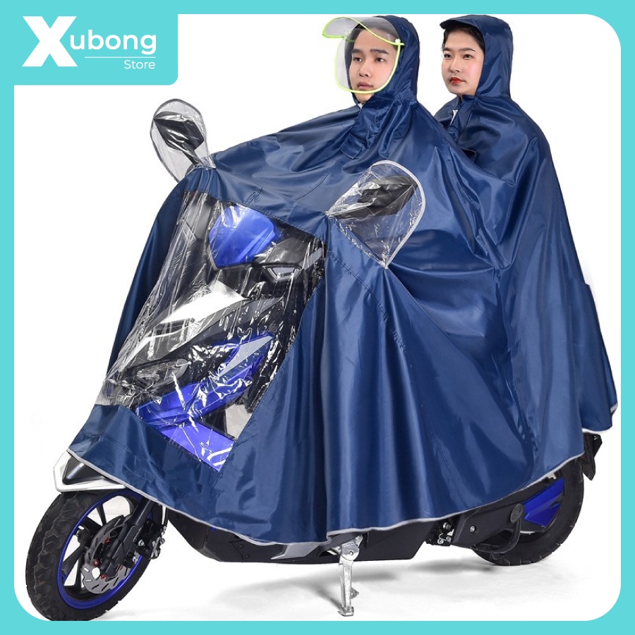 Áo Mưa Phản Quang - Có Kính Che Mặt - 2 Người - Có Túi Chùm Gương Chiếu Hậu