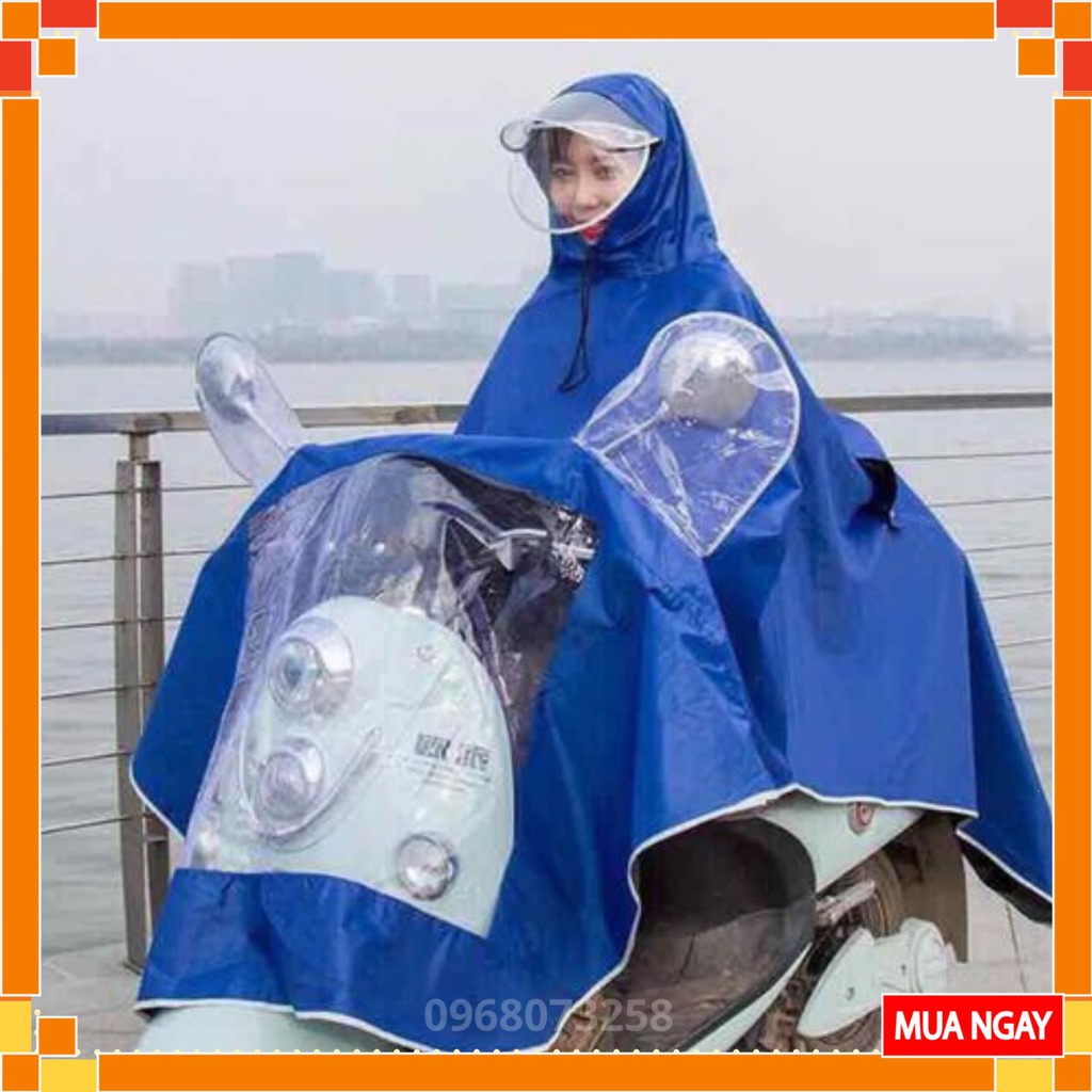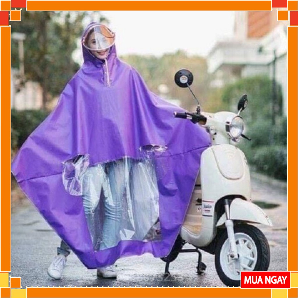- Áo mưa được thiết kế dạng choàng, có mũ, xẻ tà tiện dụng, chỉ cần thao tác trùm đầu đơn giản, thuận tiện cho người đi xe máy, xe đạp.