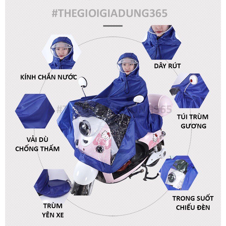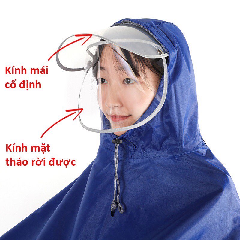 - Áo mưa phản quang có kính che mặt, thiết kế cánh dơi rất thời trang, mặt trước áo có bóng kính, mũ có kính che chắn mưa- Chất liệu vải, dù ép PVC chống thấm cao cấp dẻo mềm, mềm mại, hoàn toàn không thấm nước, được ép loại keo tố