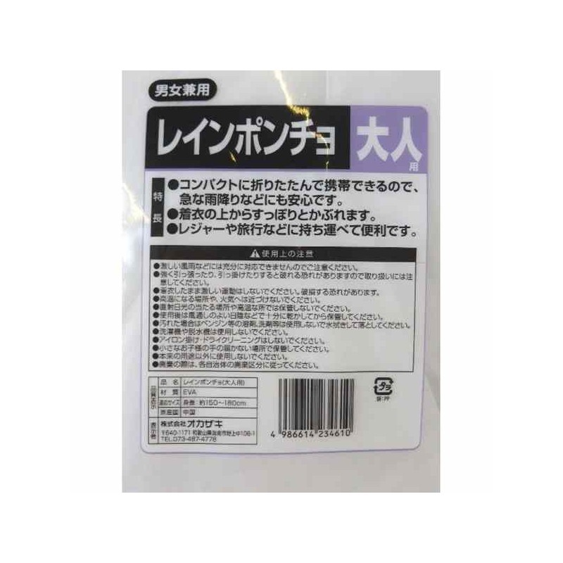 Áo mưa siêu nhẹ cho bé Okazaki:- Công dụng: Sử dụng để đi mưa. Áo mưa được thiết kế siêu nhẹ, không co dãn, không thấm ướt, độ bền cao. Gấp lại rất nhỏ gọn.