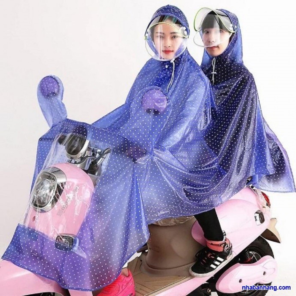 Áo Mưa Trong 2 Đầu Chấm Bi Có Kính + Tai Bao Gương