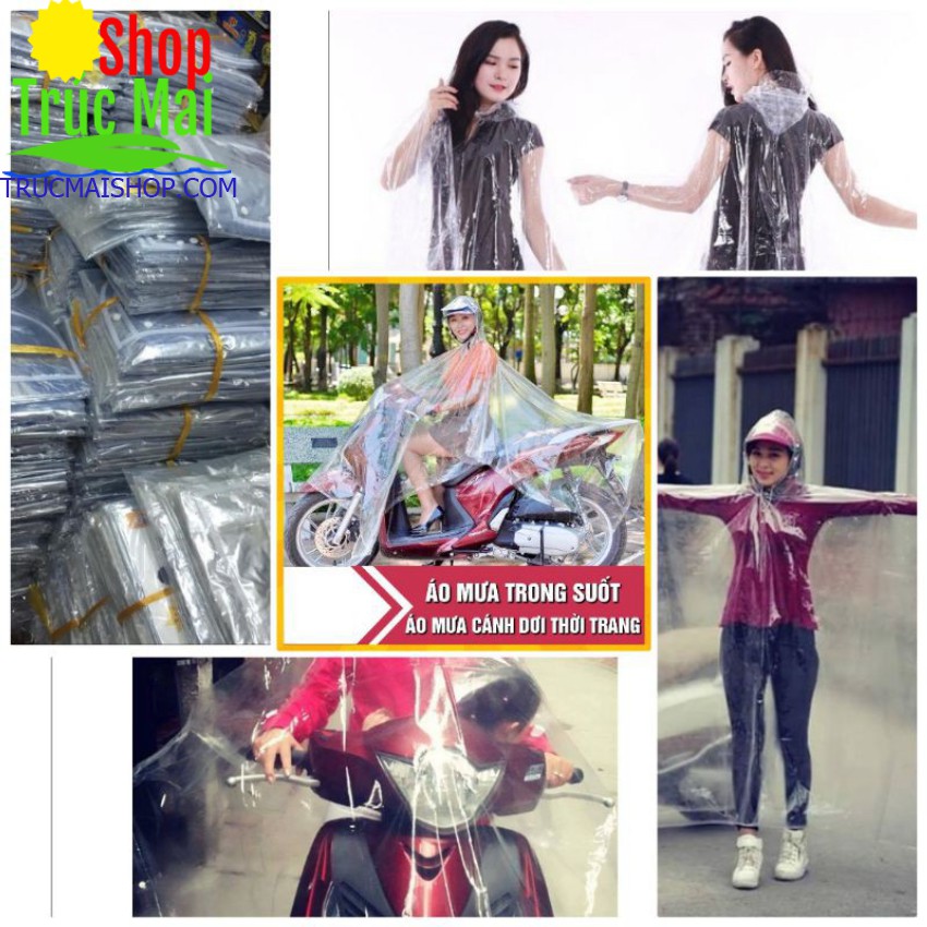 TÊN SẢN PHẨM: ÁO MƯA TRONG SUỐT - Xuất xứ: Việt Nam - Màu sắc: không màu trong suốt - Chất liệu: nhựa vi sinh không mùi. - Kích thước: tay dạng cánh dơi, dài 124cm, ngang 75cm - Trọng lượng: 495gr * Khi bạn đi giữa trời mưa, mặc một chiếc áo mưa mà các bạn gái vẫn khoe được bộ cánh xinh đẹp mình đang mặc, còn gì hấp dẫn hơn thế chứ ! * Hay nếu đang đi đường lỡ có việc dùng đến điện thoại hay phải đưa tay nhìn đồng hồ, qua một chiếc áo mưa trong suốt, việc đó sẽ trở nên tiện ích hơn. * Với những ai vừa đi siêu thị về, trên xe treo, móc nhiều túi đồ vừa mua, qua một chiếc áo mưa trong suốt, bạn cũng có thể dễ để ý hơn đến những túi đồ của mình, rất tiện so với những chiếc áo mưa thường, ta không thể nhìn được gì khác ngoài tầm nhìn phía trước fasfsafsafsafasf #aomua, #aomuatrongsuot, #aomuavisinh, #aomuacanhdoi, #aomua2dau, #aomua1mu