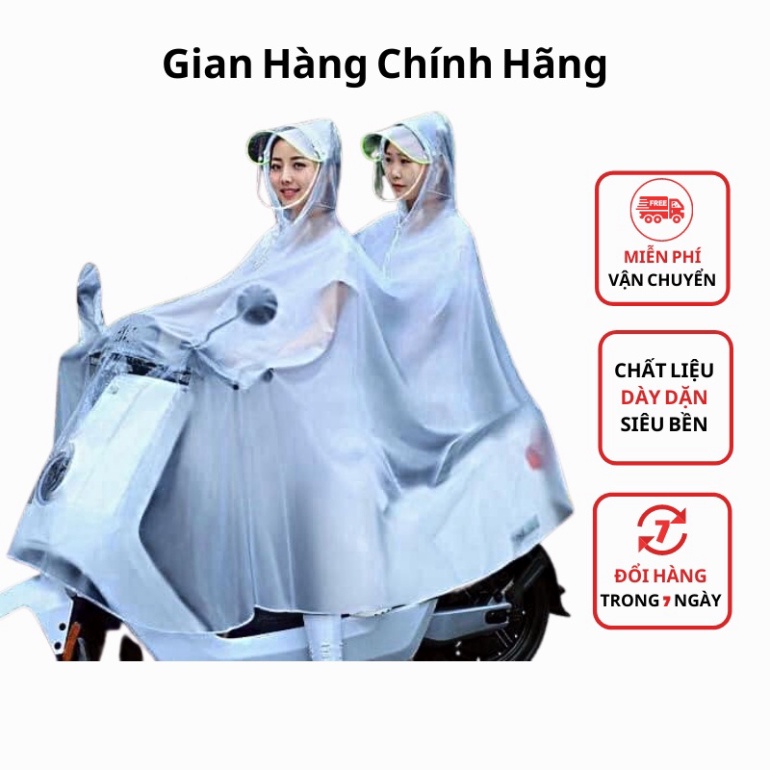- Áo 2 Mũ : Dài áo tà trước 155cm - Dài tà sau 160 cm - Rộng áo 155 cm - Có Kính chắn mưa gió ở mũ - Có bao gương
