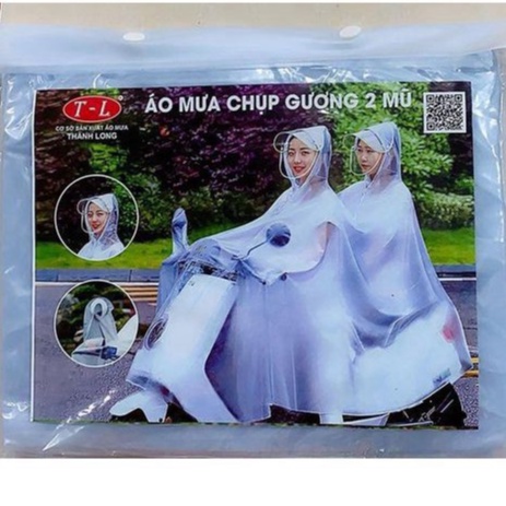 - Áo 2 Mũ : Dài áo tà trước 155cm - Dài tà sau 160 cm - Rộng áo 155 cm - Có Kính chắn mưa gió ở mũ - Có bao gương