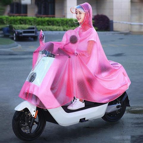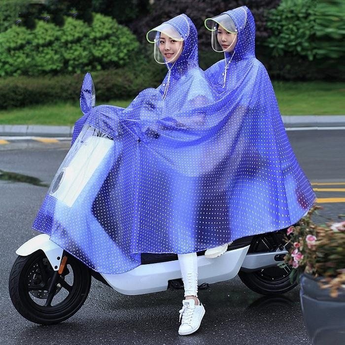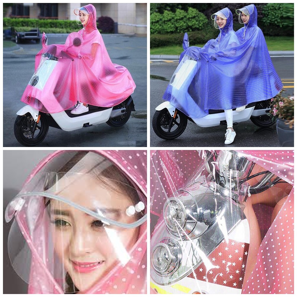 Áo mưa trong suốt chấm bi có che mặt loại 1 đầu, 2 đầuÁo mưa trong suốt chấm bi có che mặt