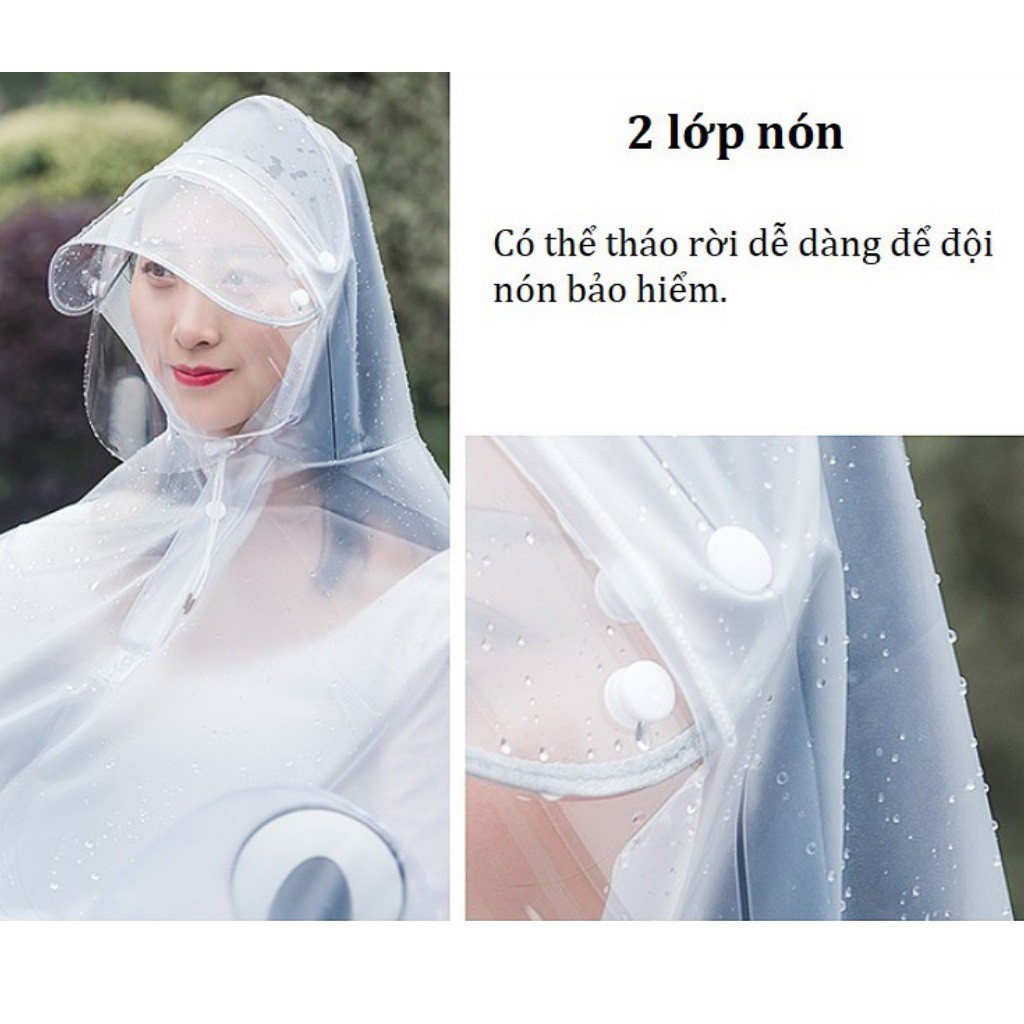 Áo mưa trong suốt có kính che mặt thiết kế thời trang cánh dơi 1 đầu + 2 đầu loại dày Hàn Quốc cao cấp