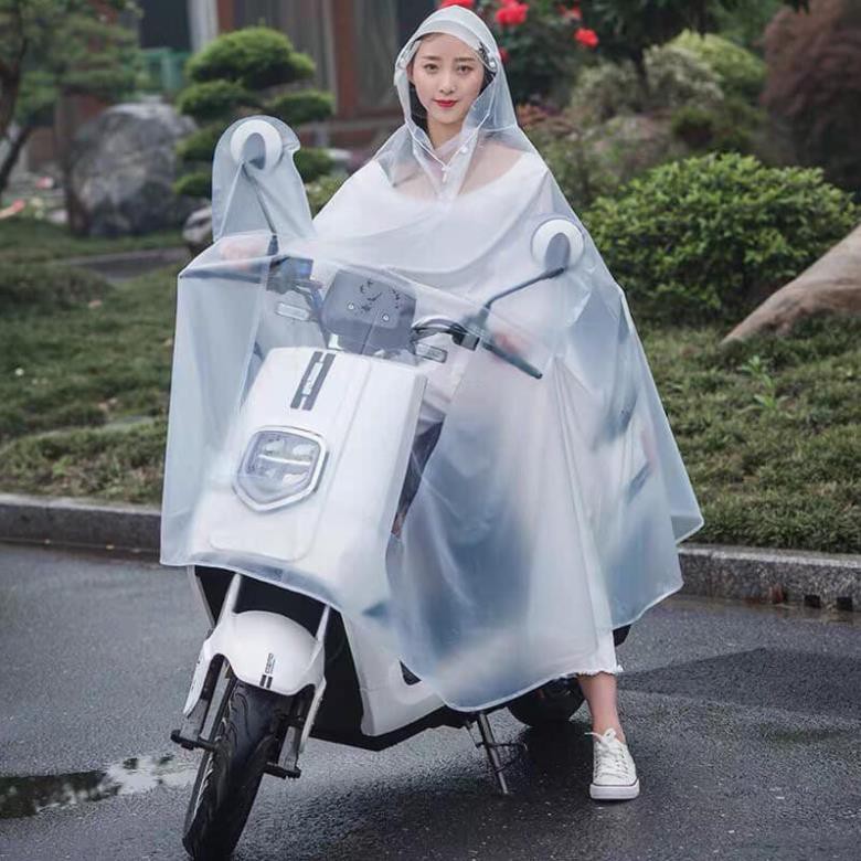Chi tiết -Áo mưa với thiết kế hình cánh dơi màu trắng trong suốt to rộng có thể bao phủ được cả thân xe, nước sẽ không bắn được vào người ngồi sau