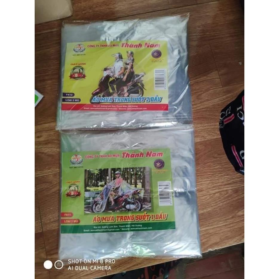 Áo mưa trong suốt loại lớn dẻo dai, bền đẹp (loại 1 và 2 mũ)