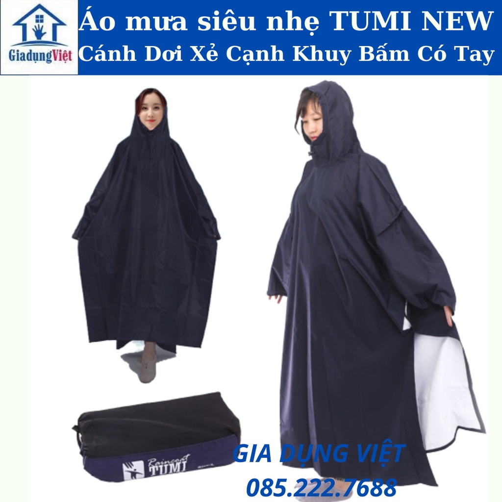 Vào mùa hè, những cơn mưa rào bất chợt dễ khiến bạn bị ướt và cảm cúm. Vì thế, việc trang bị sẵn một chiếc áo mưa nhỏ gọn trong cốp xe là điều hết sức cần thiết.Gia Dụng Việt giới thiệu tới bạn mẫu áo mưa choàng dài Tumi cao cấp, siêu nhẹ, siêu bền. siêu tiện lợi, dáng áo thiết kế rất đặc biệt, là áo cánh dơi nhưng có tay, và xẻ cạnh 2 bên có kèm khuy bấm đi đường không sợ bị tạt nước 2 bên sườn, mà áo vẫn rất gọn nhẹ dễ mặc, không sợ tà áo bay bay quấn vào bánh xe.