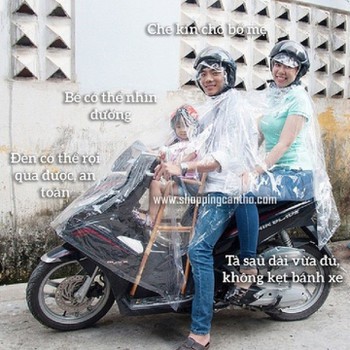 ✔Áo rộng và trong suốt nên có thể cho trẻ nhỏ ngồi yên trước xe mà không sợ khuất tầm nhìn. (đặc biệt đi ban đêm không bị che đèn xe)