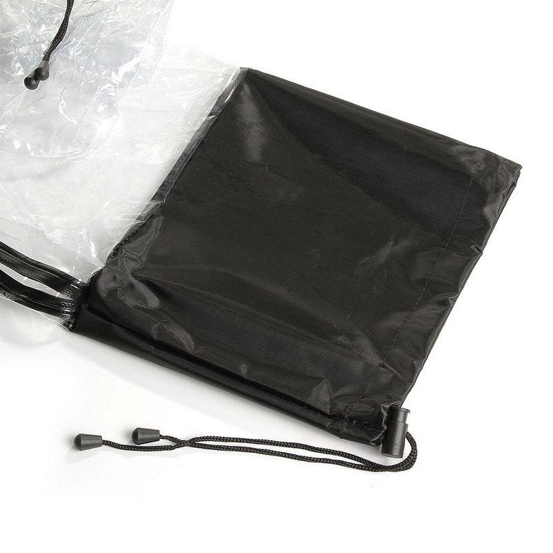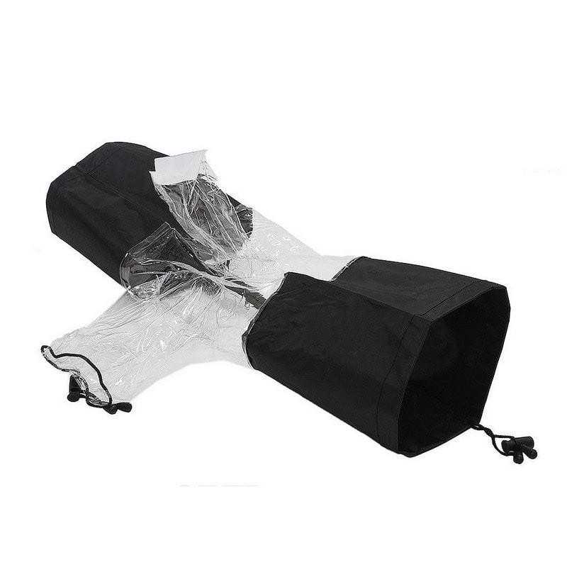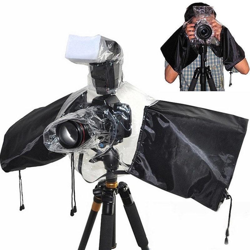 - Áo mưa vỏ áo chống nước che mưa máy ảnh và ống kính máy ảnh chuyên nghiệp DSLR thiết kế bằng vải không thấm nước và nhựa dẻo cao cấp hoàn toàn trong suốt. Hỗ trợ chụp ảnh dưới trời mưa, có thể hiệu chỉnh và quan sát được các thông số trên màn hình máy ảnh như bình thường. Có thể sử dụng cả body lớn và ống Tele kèm flash, hỗ trỡ miếng tản sáng ngay trên đầu flash.