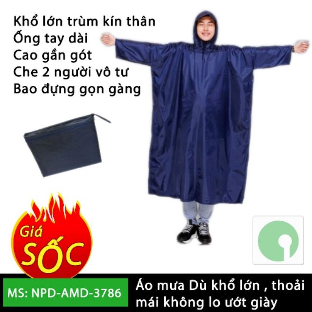 Áo Mưa Xẻ Tà Vải Dù Chống Thấm Nước- Áo mưa được làm từ vải dù siêu bền, chống thấm nước hiệu quả.