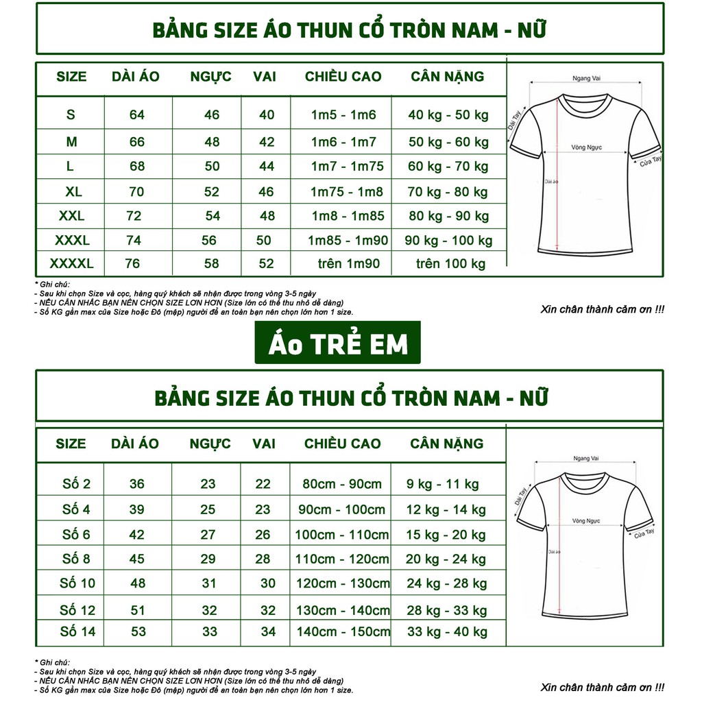 🔜 HƯỚNG DẪN MUA & CHỌN SIZE, SIZE ÁO ĐẦY ĐỦ TỪ EM BÉ ĐẾN BIG SIZE (từ 9kg – hơn 100kg)