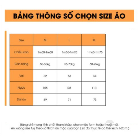 - Khi bạn gầy cao hoặc muốn mặc rộng rãi cũng lấy lên 1 size cho thoải mái nhé!