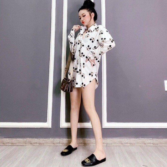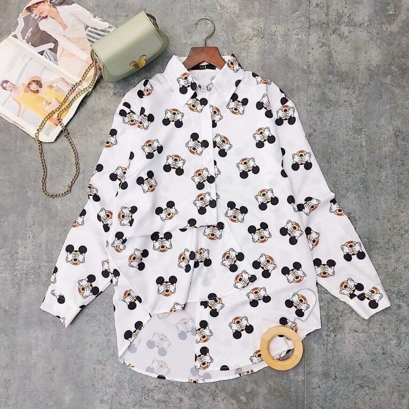 Áo sơ mi dáng dài in mic key siêu xinh Hình thật 100%