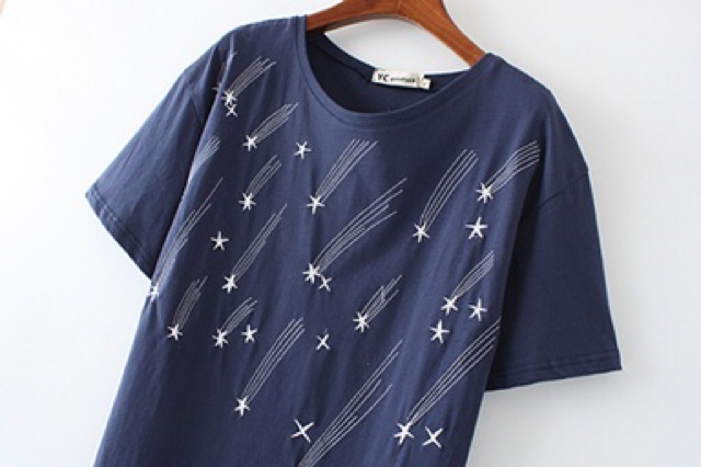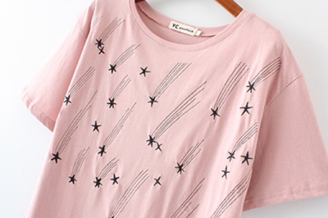 Tên sản phẩm: Áo thun in hình mưa sao băngMàu sắc: xanh đen, hồng