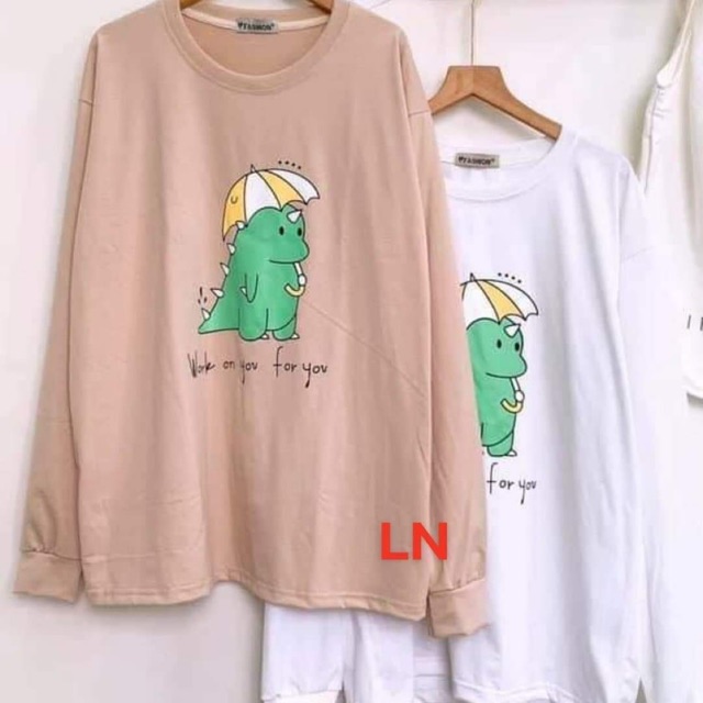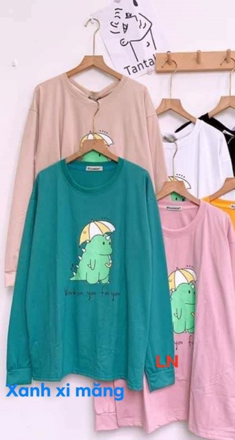 Áo thun dài tay khủng Long xanh che ô dù