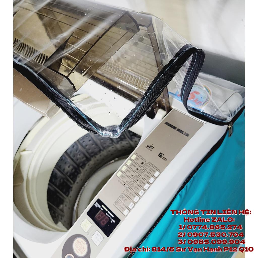 Áo Trùm Bảo Vệ Máy Giặt Cao Cấp Mặt Trong Suốt PVC - Túi Trùm Bọc Máy Giặt Lồng Đứng Cửa Trên