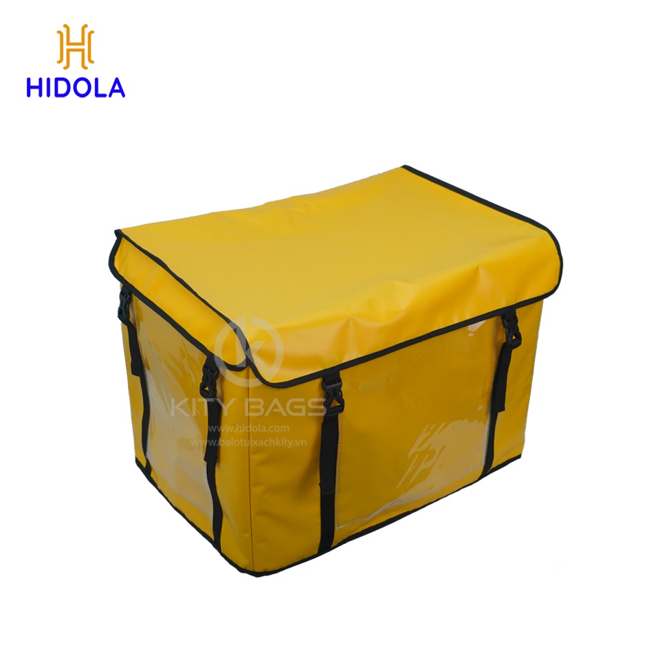 Ở mặt trước và 2 hông còn thiết kế thêm ngăn túi màn pvc kính trong giúp các shop, cửa hàng có thể in tờ rơi hay logo nhét bỏ vào trong nhằm quảng cáo cho shop cửa hàng mình trong quá trình vận chuyển.