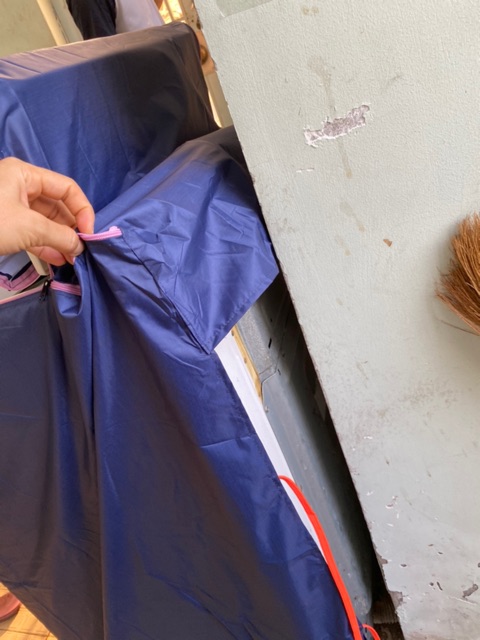 ✅ Áo phủ được 3 mặt. Mặt sau là ống nước và quạt nên chỉ buộc dây, không trùm kín.