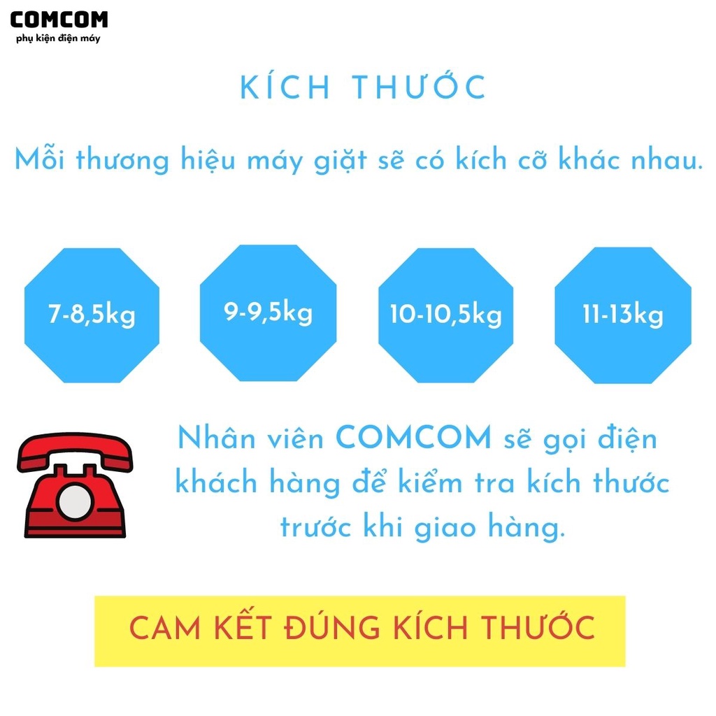 - Đa dạng kích thước và mẫu mã, thích hợp cho nhiều loại máy giặt cửa trước- cửa trên từ 7 đến 12kg.