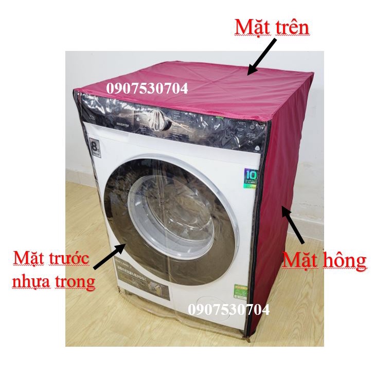 Áo Trùm Máy Giặt Cửa Trước Lồng Ngang Vải Dù Tổ Ong Nhựa Trong Cao Cấp Bền Chống Nắng Mưa 5 6 7 8 9 10 11 12 13 14 kg