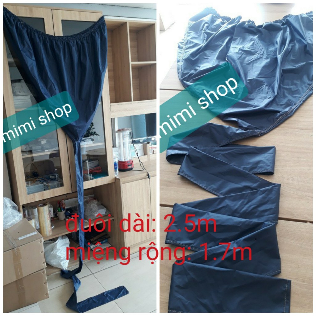 Chất liệu vải dù, bền, đẹp, màu xanh đen, miệng áo rộng 1.5m đến 1.7m +đuôi dài từ 2.5m. Dùng cho máy lạnh : treo trường