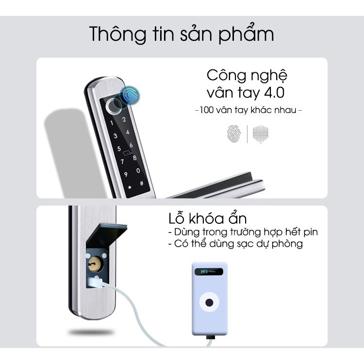 5 Chức năng mở: Vân tay, APP, Mã số, Thẻ từ, Chìa cơ