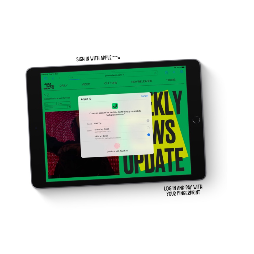 Giống như mọi sản phẩm của Apple, iPad Gen 9 cũng được thiết kế chú trọng đến quyền riêng tư và bảo mật của bạn. Touch ID vẫn được tích hợp với nút Home trên viền màn hình, tiện lợi cho việc thanh toán và mở khoá nhanh chóng.