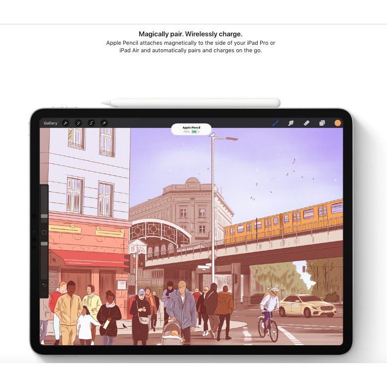 Trực quan, chính xác và tuyệt diệu, Apple Pencil mới nhất giúp bạn ghi chú, viết và vẽ tốt hơn bao giờ hết. Apple Pencil gắn kết vào iPad Pro bằng nam châm và sạc không cần dây vì vậy bút lúc nào cũng sẵn sàng khi bạn cần sử dụng. Và chuyển đổi giữa các công cụ thật dễ dàng chỉ với một cú chạm đúp đơn giản. Hãy tạo dấu ấn của riêng bạn.