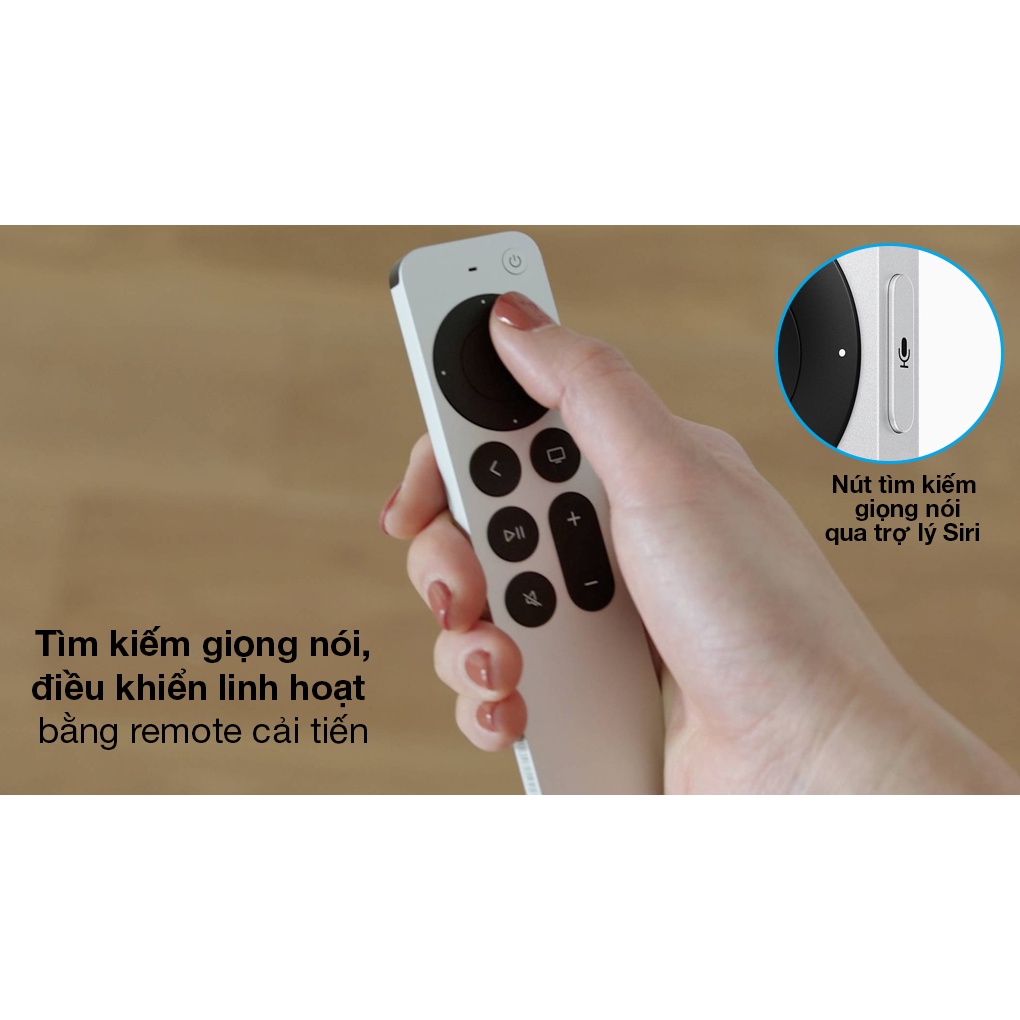 Trang bị remote thông minh bổ sung nút điều hướng, tìm kiếm bằng giọng nói với trợ lý Siri.