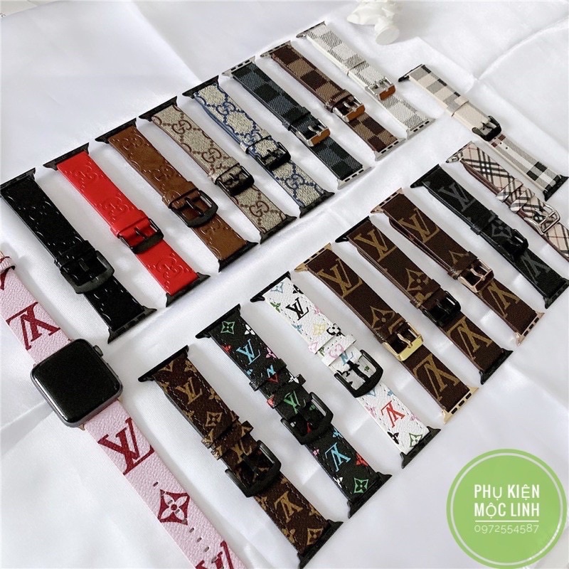 Đã về hàng phụ kiện đồng hồ Seri 7✌Apple Watch Seri 7 6 SE 5 4 3 2 1Size 38mm 42mm 40mm 41mm 44mm 45mm Dây da họa tiết Lv