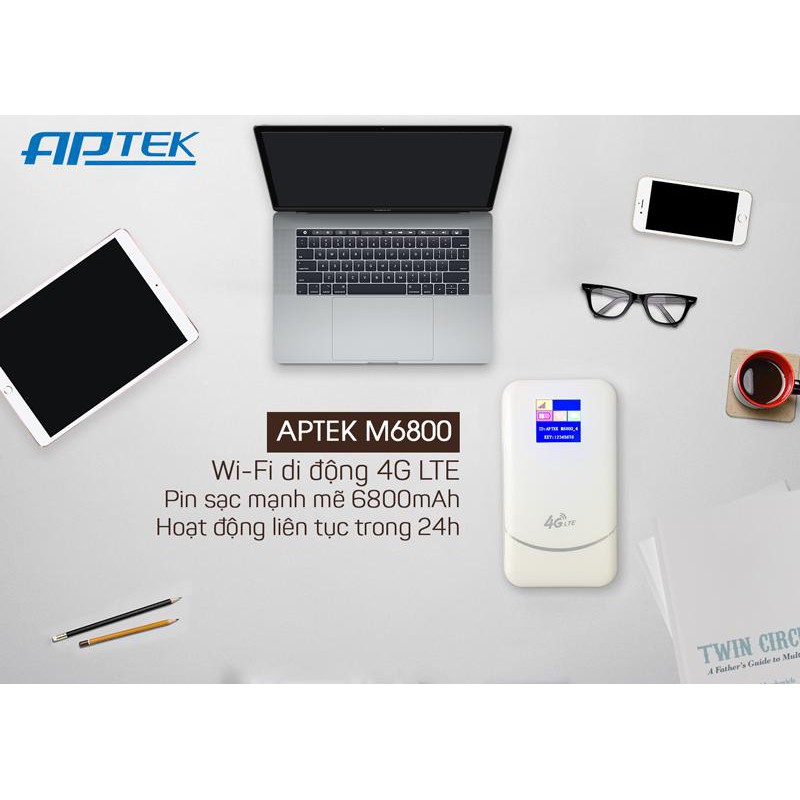 1. Đặc Điểm:- Aptek M6800 Wifi di đọng 4G LTE pin sạc mạnh mẽ 6800mah hoạt động liên tục 24h.