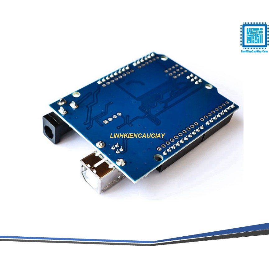 Arduino Uno là Board mạch rất phổ biến trong các dòng Arduino hiện nay, tại linhkiencaugiay.com thì phiên bản Uno là Revision 3 (Arduino Uno R3) là phiên bản mới nhất hiện giờ, các bạn nên lưu ý điểm này rất quan trọng vì ở 1 số nơi bán loại không phải R3 mà là các phiên bản cũ với cấu trúc phần cứng dễ lỗi và board sẽ dễ cháy hơn với phiên bản R3 mới nhất.