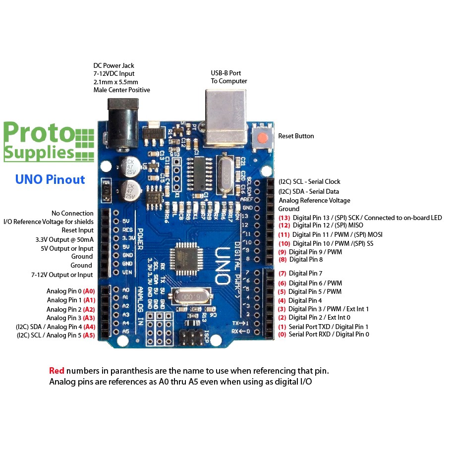 Arduino UNO R3 có thể được cấp nguồn 5V thông qua cổng USB hoặc cấp nguồn ngoài thông qua Adaptor với điện áp khuyên dùng là 712V DC và giới hạn là 620V. Thường thì nên cấp nguồn bằng pin 9V là hợp lý nhất nếu bạn không có sẵn nguồn từ cổng USB.