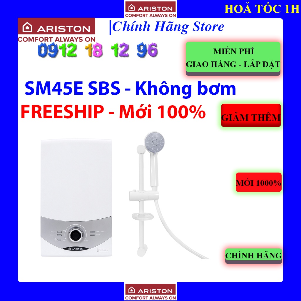 Giới thiệu [Ariston SM45E SBS] Máy nước nóng Ariston AURES SM45E SBS VN 4500W, Bảo hành chính hãng 24 tháng.