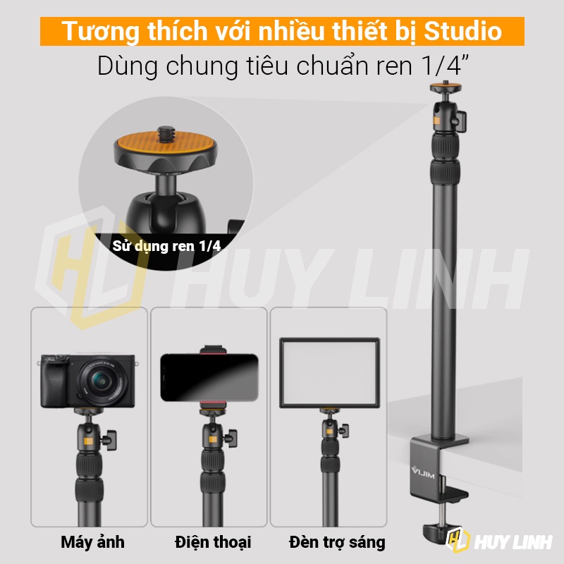 Giới thiệu Tay ARM kẹp cạnh bạn ULANZI VIJIM LS02 - Stand điều chỉnh chiều cao quay TopShot 105cm