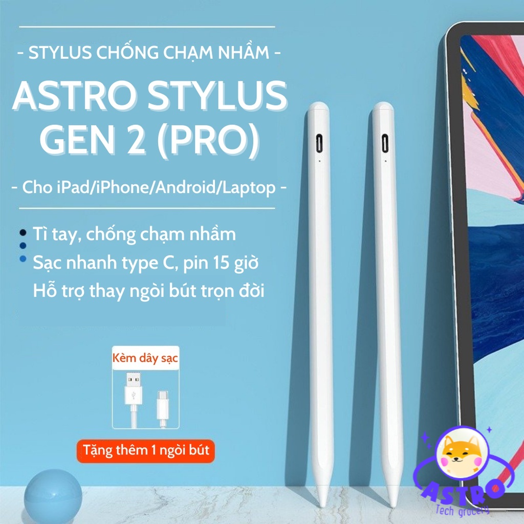 Điện Thoại & Phụ Kiện > Phụ kiện > Bút cảm ứng || [ASTRO Stylus] Bút cảm ứng thông minh Pencil Gen 2 Pro dành cho iPad, iPhone, điện thoại Android, LaptopCòn hàng