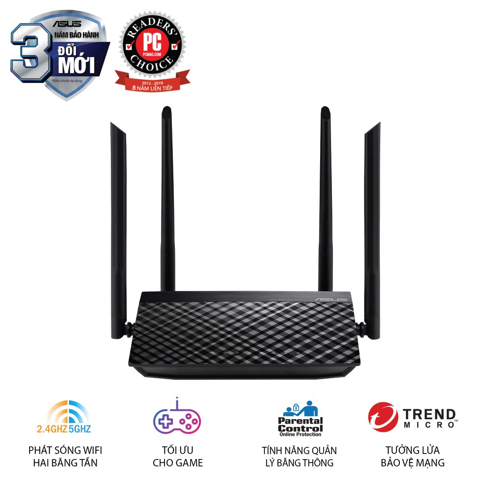 ASUS RT-AC1200 V2 (Mobile Gaming) Wifi AC1200 | 2 băng tần | Cài đặt nhanh | 4 cổng LAN