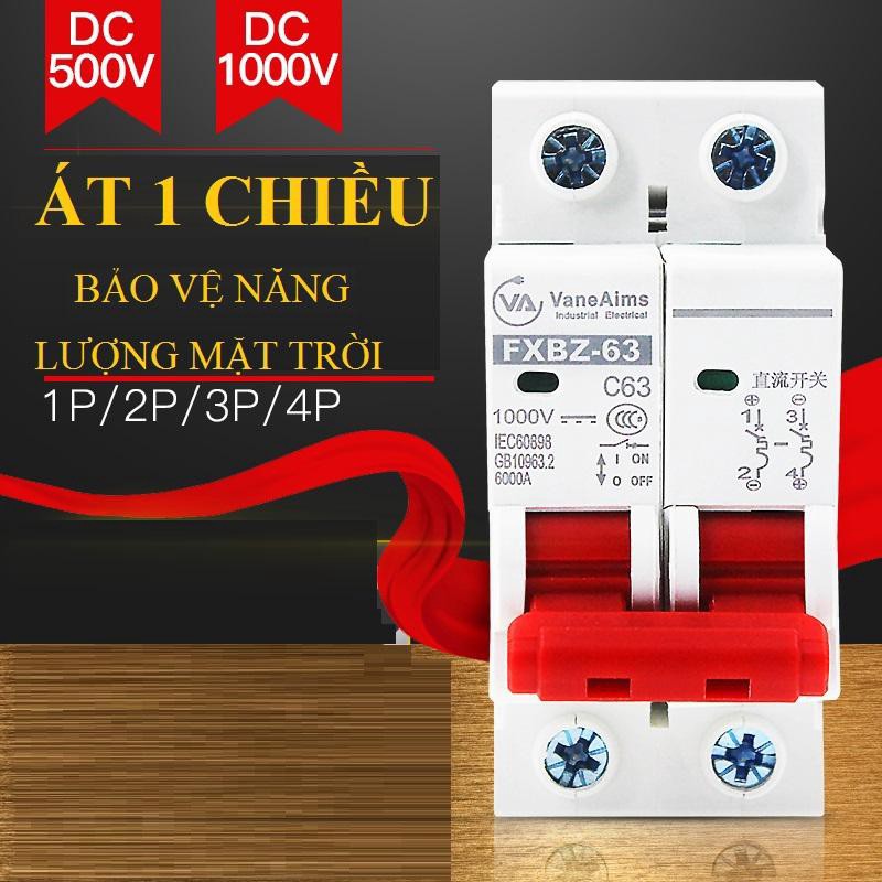 Bộ ngắt mạch CB DC 1000V điện một chiều cầu dao chuyên dụng cho Solar Năng Lượng Mặt Trời FXBZ-63/2P 25A 40A 63A, át 1 chiều, aptomat 1 chiều, sạc năng lượng mặt trời, pin năng lượng măt trời, thiết bị tiết kiệm điện