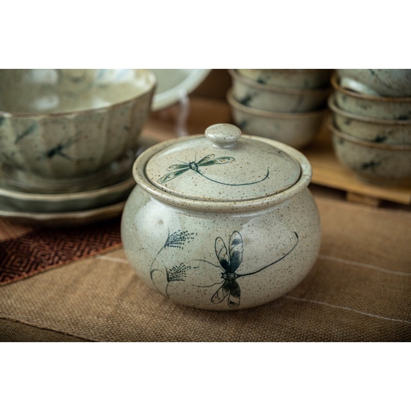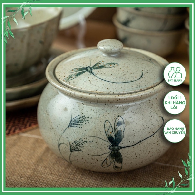 Nhà cửa & Đời sống > Bộ đồ bàn ăn > Tô || Âu Cơm Sứ Men Tiêu Hoạ Tiết Chuồn Chuồn Thố Có Nắp Đựng Cơm Gốm Sứ Bát Tràng Cao CấpCòn hàng