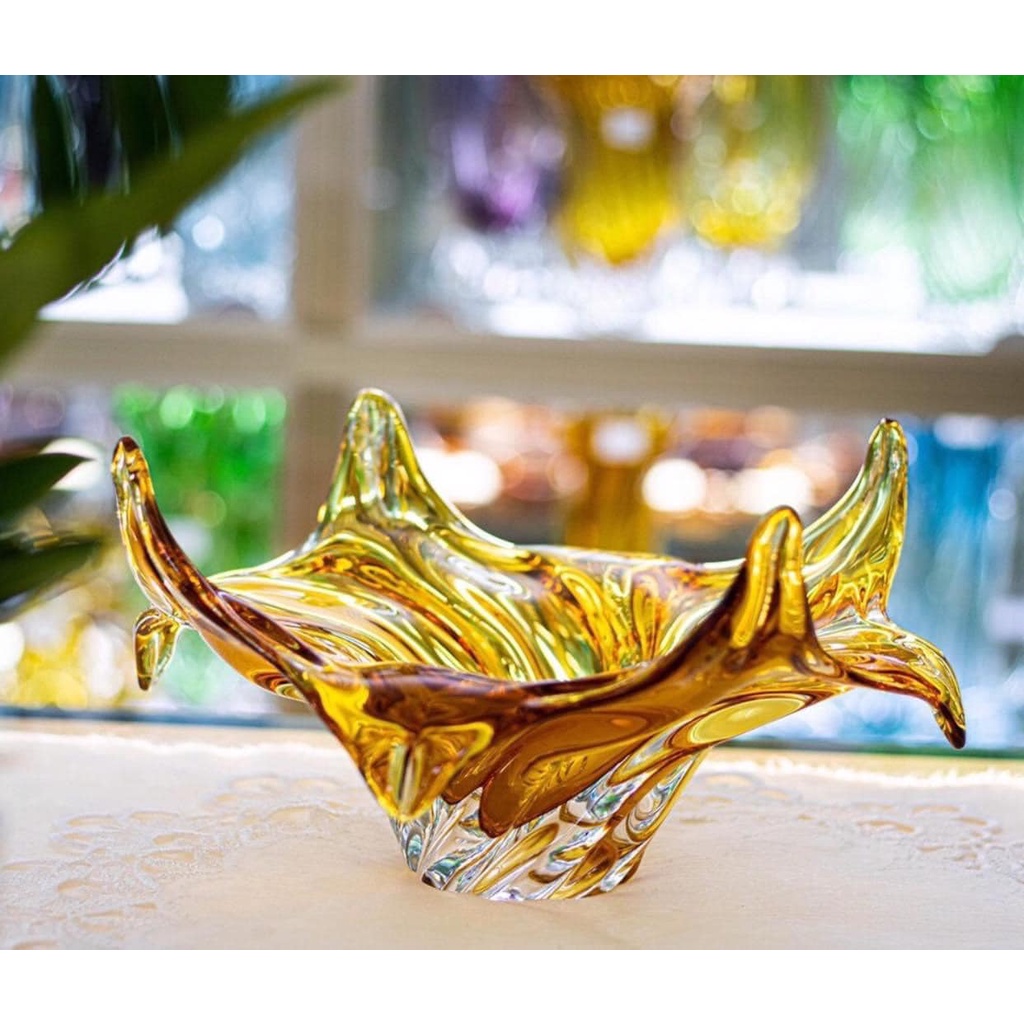 Âu hoa quả pha lê màu cao cấp Ergermann Bohemia - Tuyệt phẩm nghệ thuậtKích thước: Ngang 32cm x cao 16cm