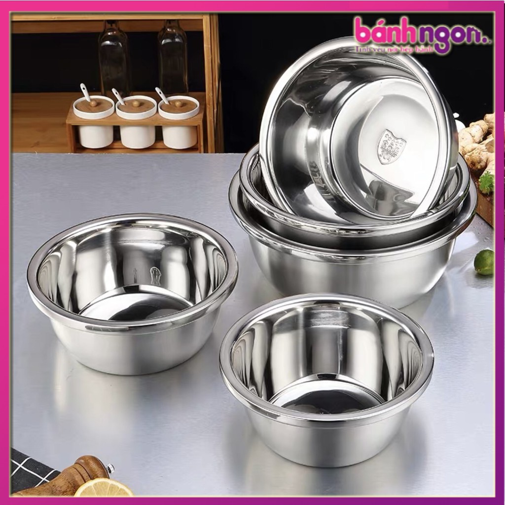 khá thông dụng và “đa dụng”, thường được sử dụng luôn làm bát trộn salat hay bát đựng rau quả tươi trong nhà. Với thành bát dày dặn, làm từ inox nên bền, dễ lau rửa và an toàn khi tiếp xúc với thực phẩm. #Ủbột Đặc biệt #báttrộn có thể sử dụng trong lò vi sóng, trên bếp từ nhờ mặt đáy 🍩 Bánh Ngon - Nguyên Liệu -Dụng Cu Làm Bánh Sỉ Lẻ