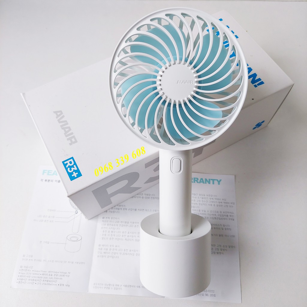 [AVIAIR Hàn Quốc] Quạt tích điện cầm tay pin khủng 2550mAh AVIAIR R3+ có đế để bàn