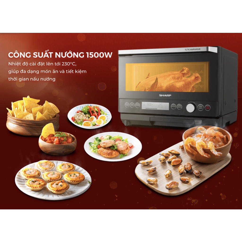 Thiết Bị Điện Gia Dụng > Đồ gia dụng nhà bếp > Lò vi sóng || AX-1250VN-B | Lò vi sóng Sharp hơi nước siêu nhiệt Steamwave (Dung tích 25 lít, Công nghệ J-Tech inverter, Chính hãng)Còn hàng