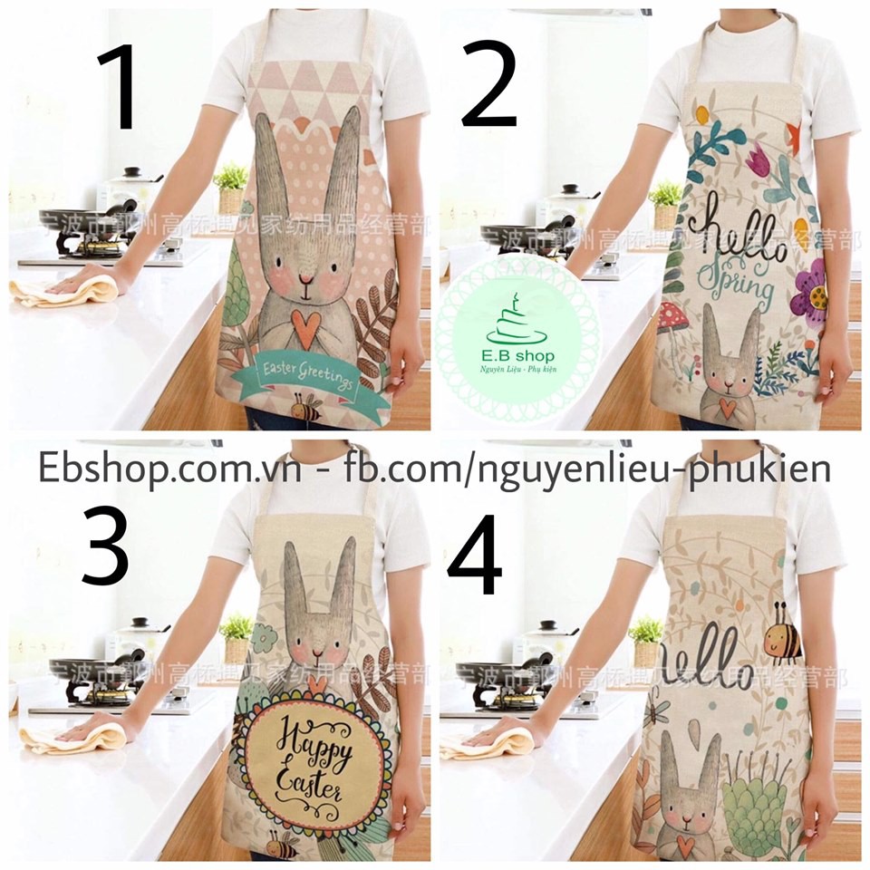 B272 - Tạp dề 4 mẫuVới chất liệu canvas thô mềm mại cùng hình thỏ dễ thương trên chiếc tạp dề chắc chắn là một sản phẩm không thể thiếu trong căn bếp yêu thương của bạn