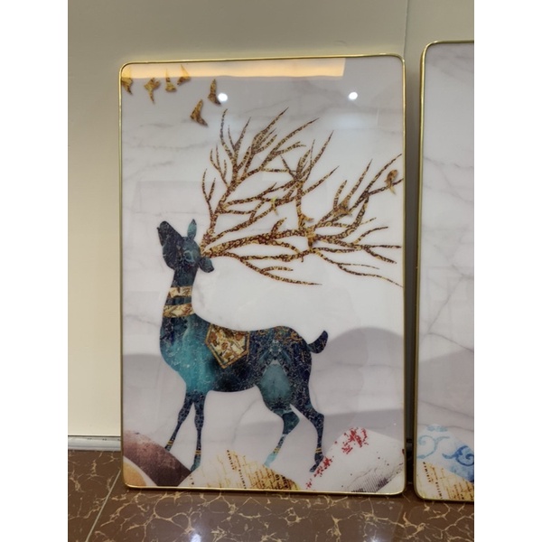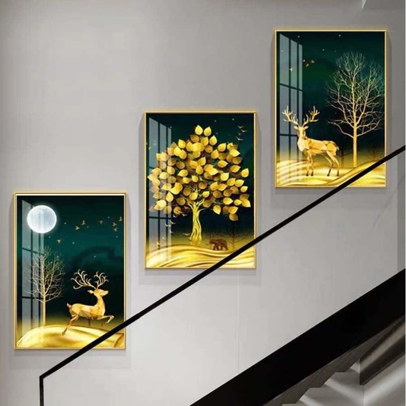 S12G Bộ 3 Tranh ẢNH ÉP MICA SIÊU BÓNG 3D Treo Tường Đôi Công Hoàng Kim - Tặng kèm đinh đa năng không cần khoan tường