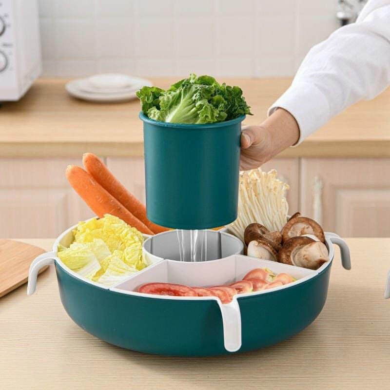 Rổ xoay đa năng tha hồ đựng mỗi ngăn một loại rau, kèm thêm chậu đựng bên dưới