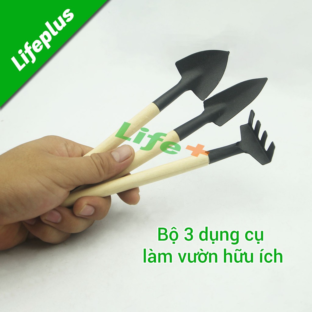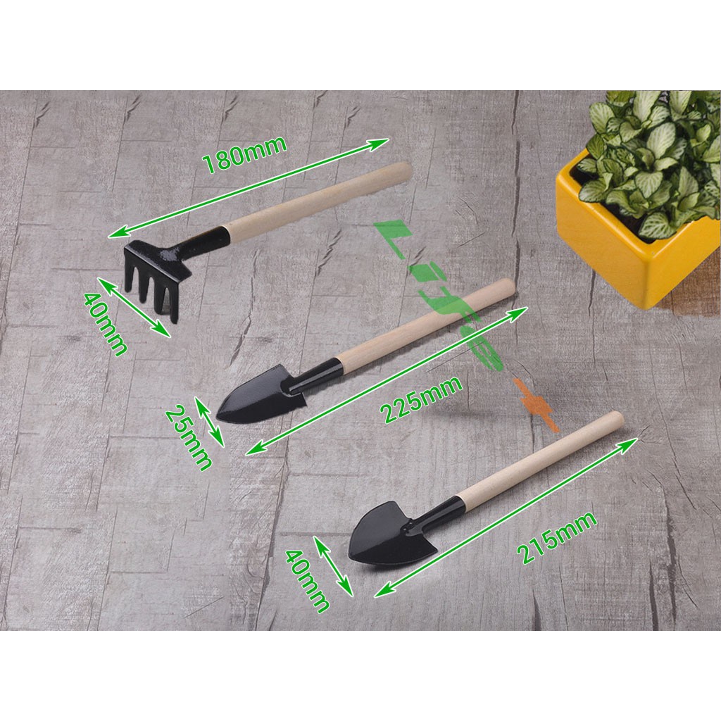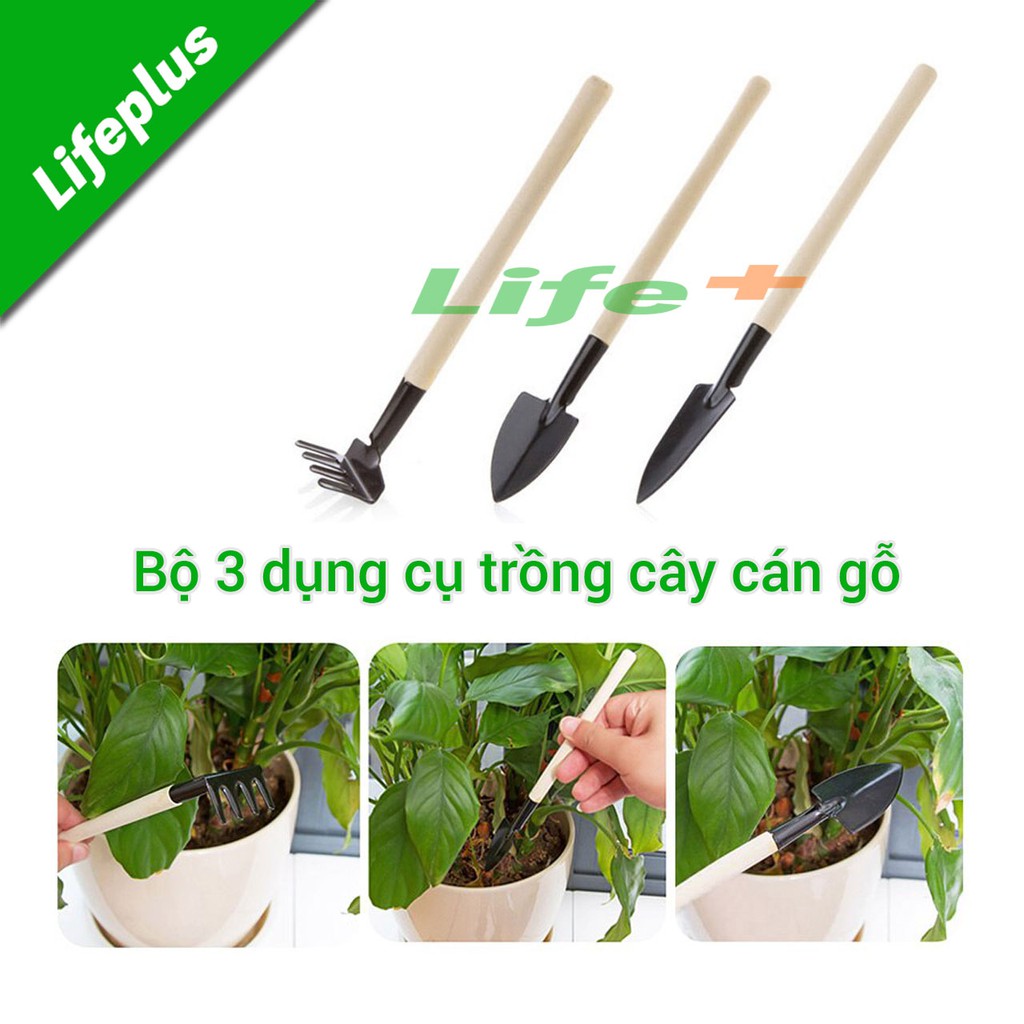 Bộ 3 dụng cụ trồng cây cán gỗ phù hợp với nhiều đối tượng, kể cả phụ nữ và trẻ em.